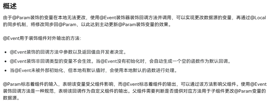 我本来以为V2版本的双向绑定需要像V1版本那样手动处理子组件暴露出去的数据,但实际上官方特意注明了在@Event修饰的函数没有被初始化时,会自动初始化一个空函数。