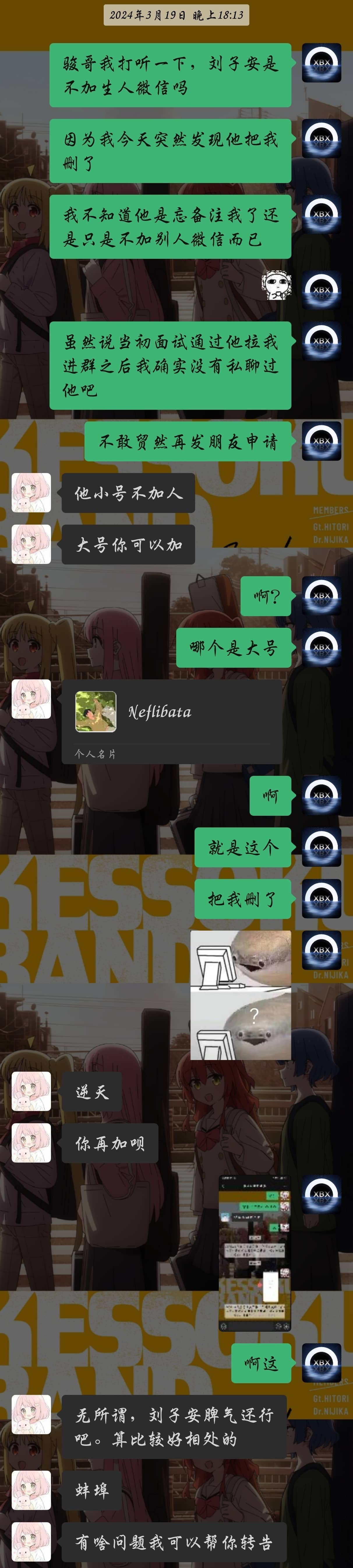 在周一的晚饭时间,我和我的舍友一起遛弯的时候看到了紫枫堂漫研社的广告立牌,我当即决定拉上他俩去看。孙桑是很愉快的就答应了毕竟他也看过孤独摇滚也想去看剧场版只是一直还没机会去看,但是小刚没看过,嘴上也说没有兴趣,当身体还是很诚实的跟我来到了WLA206(笑)。